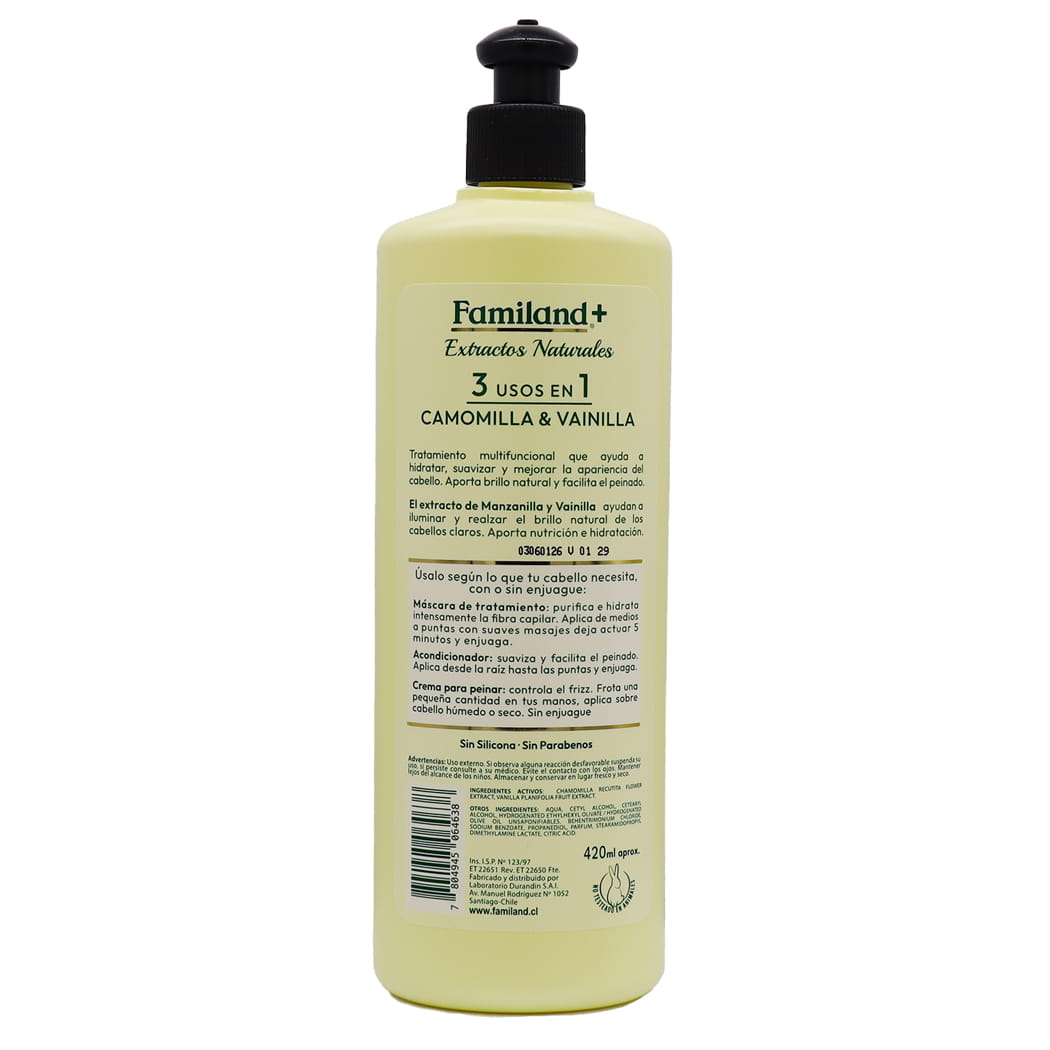 Tratamiento multifuncional que ayuda a hidratar, suavizar y mejorar la apariencia del cabello. Aportando brillo natural y facilita el peinado